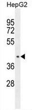 - CCDC17 Antibody (C-term) (Cat. #AP50772PU-N) western blot analysis in HepG2 cell line lysates (35µg/lane).This demonstrates the CCDC17 antibody detected the CCDC17 protein (arrow).