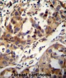 - CCDC17 antibody (C-term) (Cat. #AP50772PU-N) immunohistochemistry analysis in formalin fixed and paraffin embedded human breast carcinoma followed by peroxidase conjugation of the secondary antibody and DAB staining.This data demonstrates the use of the CCDC17 antibody (C-term) for immunohistochemistry. Clinical relevance has not been evaluated.