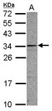 - Sample (30 ug of whole cell lysate) A: A549 12% SDS PAGE CCDC107 antibody diluted at 1:1000