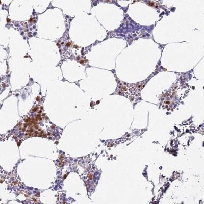 - Immunohistochemistry-Paraffin: MEIG1 Antibody [NBP1-94132] - Staining of human bone marrow shows strong cytoplasmic and nuclear positivity in subsets of hematopoietic cells.