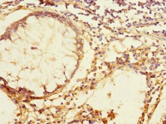 - Immunohistochemistry analysis of paraffin-embedded human colon cancer using TEX43 polyclonal antibody (Product # PA5-144146) at dilution of 1:100.