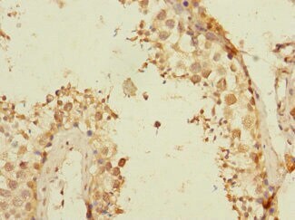 - Immunohistochemistry analysis of paraffin-embedded human testis tissue using TEX43 polyclonal antibody (Product # PA5-144146) at dilution of 1:100.