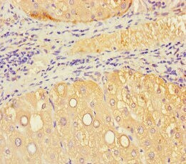 - Immunohistochemistry analysis of paraffin-embedded human liver tissue using VMO1 polyclonal antibody (Product # PA5-144150) at dilution of 1:100.