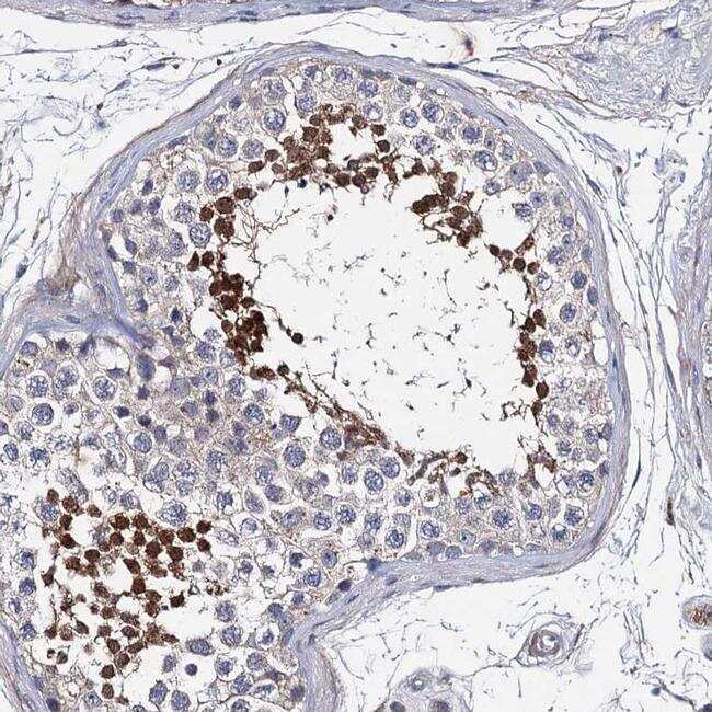 - Immunohistochemical analysis of C11orf66 in human testis using C11orf66 Polyclonal Antibody (Product # PA5-58647) shows high expression.