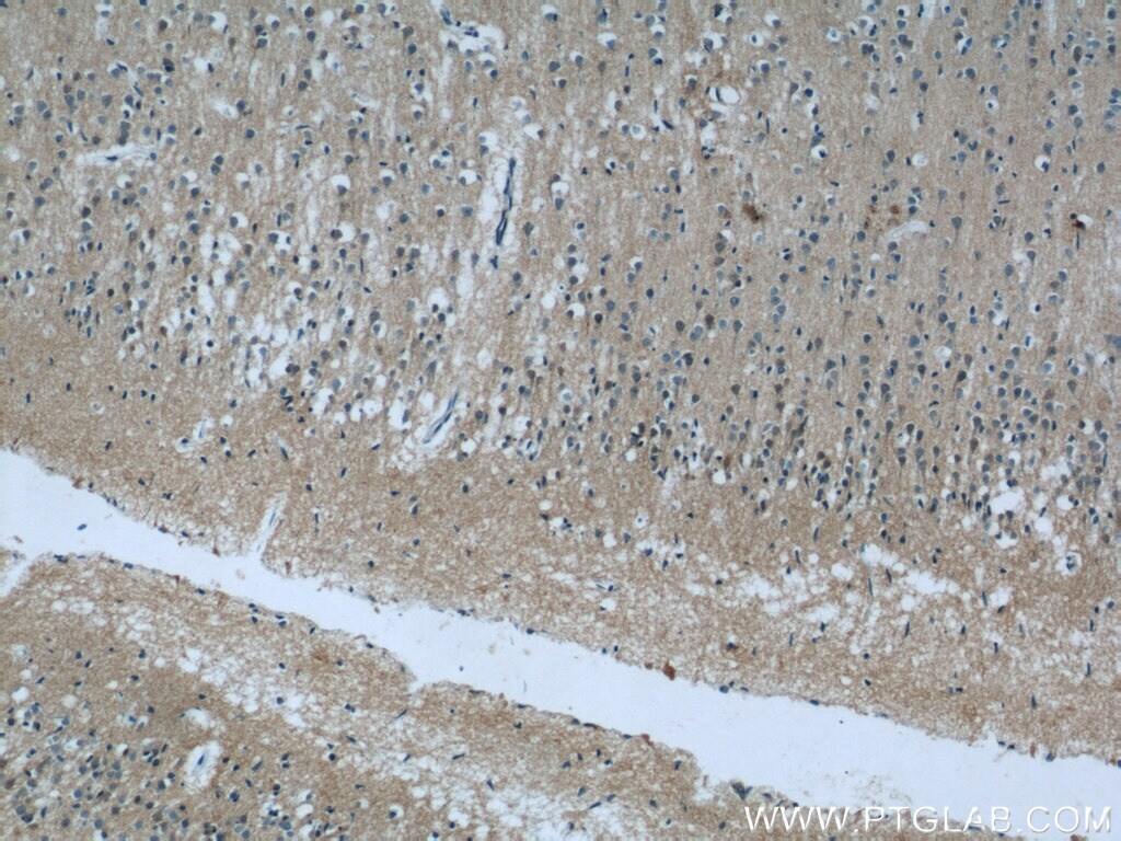- Immunohistochemistry of paraffin-embedded human brain tissue slide using 24866-1-AP (LRCH2 Antibody) at dilution of 1:50 (under 10x lens).