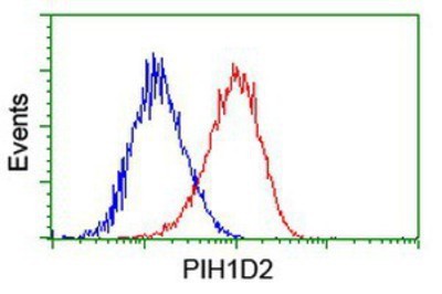 - Flow Cytometry: PIH1D2 Antibody (4A10) [NBP2-03656] - Analysis of Hela cells, using anti-PIH1D2 antibody, (Red), compared to a nonspecific negative control antibody (Blue).