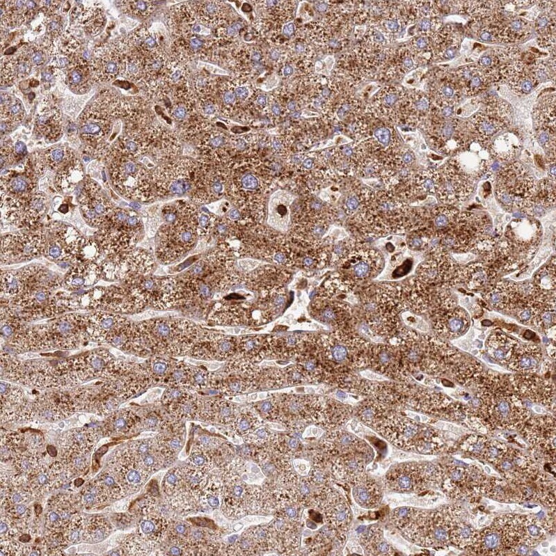 - Immunohistochemical analysis of TTPAL in human liver using TTPAL Polyclonal Antibody (Product # PA5-61381) shows strong positivity in cytoplasm granular in hepatocytes.