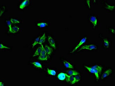 - Immunocytochemistry analysis of HeLa cells using UNC13C polyclonal antibody (Product # PA5-144244) at dilution of 1:100 and Alexa Fluor 488-congugated AffiniPure Goat Anti-Rabbit IgG (H+L).