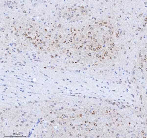 - Immunohistochemistry analysis of TRANK1 in paraffin-embedded section of mouse brain tissue. Heat mediated antigen retrieval was performed in EDTA buffer (pH 8.0, epitope retrieval solution). The tissue section was blocked with 10% goat serum. Samples were incubated with TRANK1 Polyclonal antibody (Product # PA5-144000) using a dilution of 2 μg/mL overnight at 4°C. Peroxidase Conjugated Goat Anti-rabbit IgG was used as secondary antibody and incubated for 30 minutes at 37°C. The tissue section was developed using HRP Conjugated Rabbit IgG Super Vision Assay Kit with DAB as the chromogen.