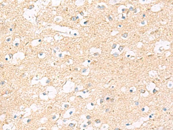 - Immunohistochemistry of paraffin-embedded Human brain tissue using MRPL20 Polyclonal Antibody at dilution of 1:60(×200)