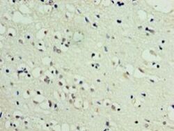 - Immunohistochemistry of paraffin-embedded human brain tissue using antibody at 1:100 dilution. This image was taken for the unconjugated form of this product. Other forms have not been tested.
