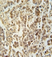 - Immunohistochemistry analysis in formalin fixed and paraffin embedded human testis carcinoma reacted with LUZP4 Antibody (N-term) ?, which was?peroxidase conjugated to the secondary antibody and followed by?DAB staining.