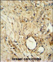 - Immunohistochemistry analysis of ITIH5 in formalin fixed and paraffin embedded human breast carcinoma. Samples were incubated with ITIH5 polyclonal antibody (Product # PA5-24445) followed by peroxidase conjugation of the secondary antibody and DAB staining. This data demonstrates the use of this antibody for immunohistochemistry. Clinical relevance has not been evaluated.