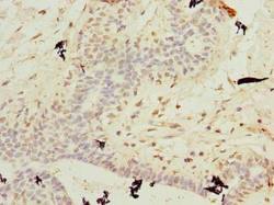 - Immunohistochemistry of paraffin-embedded human breast cancer using antibody at dilution of 1:100.