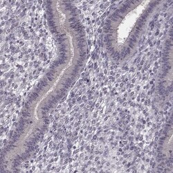 - Immunohistochemical staining of C10orf62 in human endometrium using C10orf62 Polyclonal Antibody (Product # PA5-67264) shows low expression as expected.