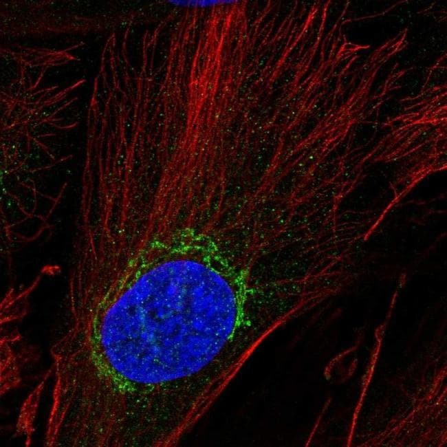 - Immunofluorescent staining of ADAMTSL5 in human cell line BJ using an ADAMTSL5 Polyclonal Antibody (Product # PA5-60604) shows localization to the Golgi apparatus.