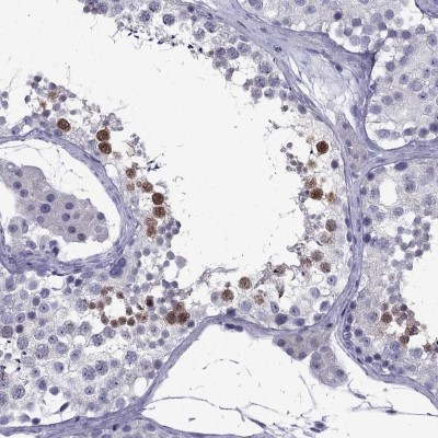 - Immunohistochemistry-Paraffin: POM121L12 Antibody [NBP1-90526] - Staining of human testis shows high expression.
