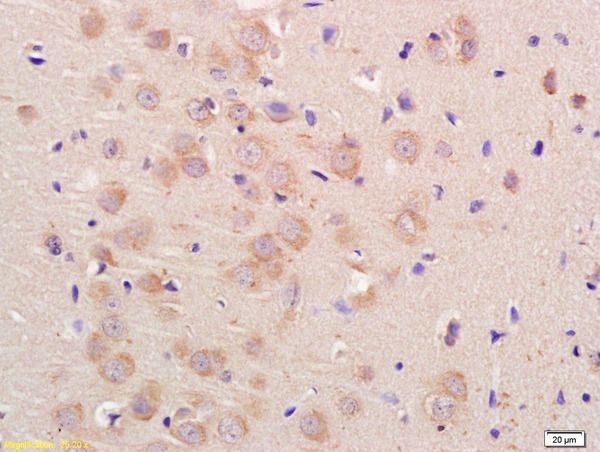 - IHC-P analysis of rat brain using UNC80 antibody at a dilution of 1:200.