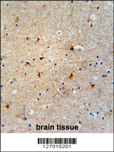 - GTPBP8 Antibody (Center) immunohistochemistry analysis in formalin fixed and paraffin embedded human brain tissue followed by peroxidase conjugation of the secondary antibody and DAB staining. This data demonstrates the use of the GTPBP8 Antibody (Center) for immunohistochemistry. Clinical relevance has not been evaluated.