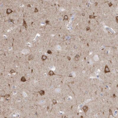 - Immunohistochemistry-Paraffin: GTPBP8 Antibody [NBP1-81679] - Staining of human cerebral cortex shows strong cytoplasmic positivity in neuronal cells.