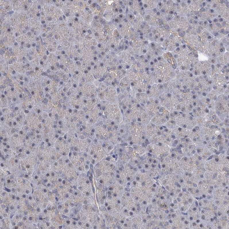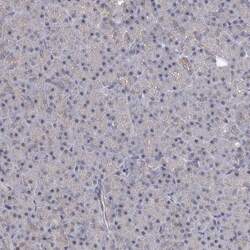 - Immunohistochemical staining of GPATCH11 in human pancreas using GPATCH11 Polyclonal Antibody (Product # PA5-58306) shows low expression as expected.