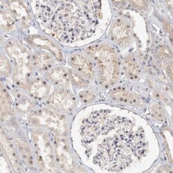 - Immunohistochemical analysis of GPATCH11 in human kidney using GPATCH11 Polyclonal Antibody (Product # PA5-58306) shows weak nuclear positivity in cells in tubules.