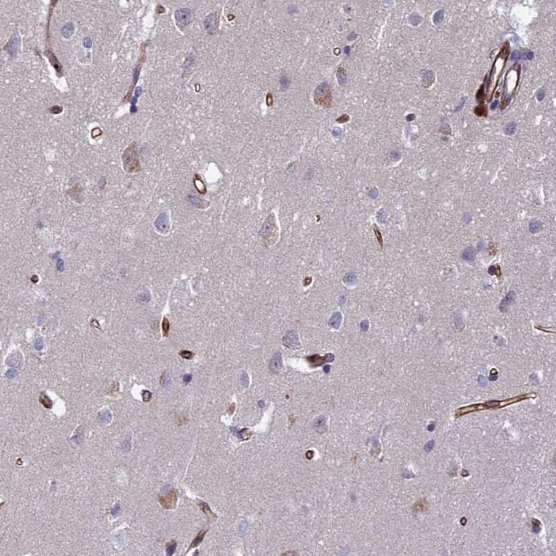 - Immunohistochemical analysis of C15orf59 in human cerebral cortex using C15orf59 Polyclonal Antibody (Product # PA5-59623) shows distinct positivity in endothelial cells.