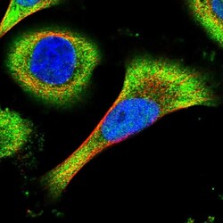 - Immunofluorecent analysis of C15orf59 in human cell line U-251 MG using C15orf59 Polyclonal Antibody (Product # PA5-59623). Staining shows localization to nucleoplasm and cytosol.
