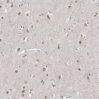 - Immunohistochemical staining of human cerebral cortex with CXorf1 polyclonal antibody (Cat # PAB22741) shows moderate nuclear positivity in neuronal cells at 1:10-1:20 dilution.