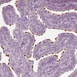 - Immunohistochemical staining of FAM154B in human fallopian tube using FAM154B Polyclonal Antibody (Product # PA5-59315) shows high expression.