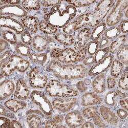 - Immunohistochemical analysis of SPICE1 in human kidney using SPICE1 Polyclonal Antibody (Product # PA5-64185) shows strong granular cytoplasmic positivity in cells in tubules.