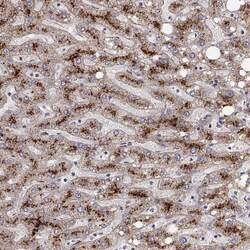 - Immunohistochemical analysis of SPICE1 in human liver using SPICE1 Polyclonal Antibody (Product # PA5-64185) shows strong granular cytoplasmic positivity in hepatocytes.