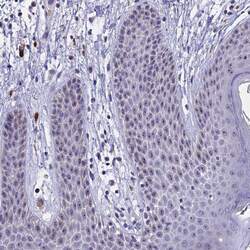 - Immunohistochemical analysis of KNOP1 in human skin using KNOP1 Polyclonal Antibody (Product # PA5-59418) shows strong positivity in nucleoli in squamous epithelial cells.