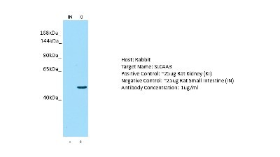 - Western Blot: SLC4A3 Antibody [NBP2-83556] - Host: Rabbit. Target: SLC4A3. Positive control (+): Rat Kidney (R-KI). Negative control (-): Rat Intestine (R-IN). Antibody concentration: 1ug/ml