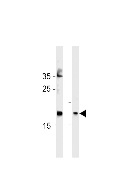 - FAM159A Antibody (Center) (Cat. #AP20445c) western blot analysis in Hela cell line and mouse bladder tissue lysates (35ug/lane).This demonstrates the FAM159A antibody detected the FAM159A protein (arrow).