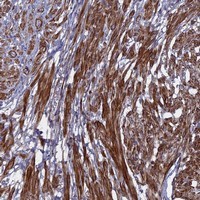 - Immunohistochemical staining of human smooth muscle with FAM209A polyclonal antibody (Cat # PAB23974) shows strong cytoplasmic and membranous positivity in smooth muscle cells at 1:20-1:50 dilution.