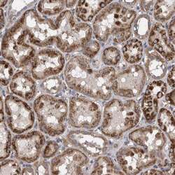 - Immunohistochemical analysis of ZNF324B in human kidney using ZNF324B Polyclonal Antibody (Product # PA5-54791) shows strong cytoplasmic positivity in tubular cells.
