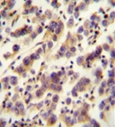 - Immunohistochemistry analysis in formalin fixed and paraffin embedded human testis carcinoma reacted with OR1J4 Antibody (C-term) ?, which was?peroxidase conjugated to the secondary antibody and followed by?DAB staining. This data demonstrates the use of the OR1J4 antibody (C-term) for immunohistochemistry. Clinical relevance has not been evaluated.