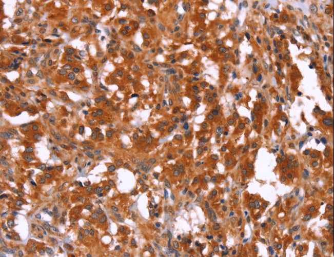 - Immunohistochemistry of paraffin-embedded Human thyroid cancer using HAS1 Polyclonal Antibody at dilution of 1:30.