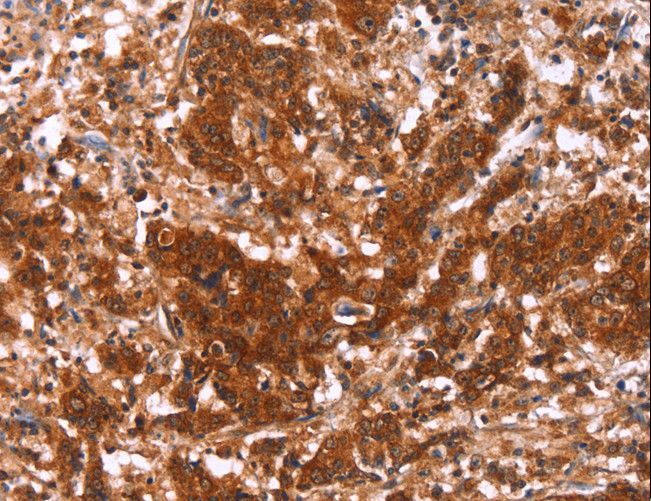 - Immunohistochemistry of paraffin-embedded Human gastric cancer using HAS1 Polyclonal Antibody at dilution of 1:30.