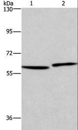- Western blot analysis of Human testis and prostate tissue, using HAS1 Polyclonal Antibody at dilution of 1:350.