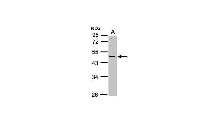 - Sample(30 ug whole cell lysate)A:A431 10% SDS PAGEOAGA00552 diluted at 1:500