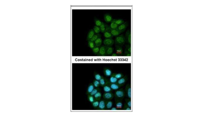 - Immunofluorescence analysis of paraformaldehyde-fixed A431, using LRRC43(OAGA00552) antibody at 1:200 dilution.