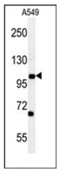 - Western blot analysis of DPY19L2 Antibody (C-term) Cat.-No AP51317PU-NÂ in A549 cell line lysates (35ug/lane). This demonstrates the DPY19L2 antibody detected the DPY19L2 protein (arrow).