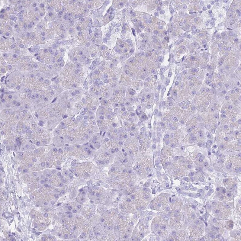 - Immunohistochemical analysis of CYP21A2 in human pancreas using CYP21A2 Polyclonal Antibody (Product # PA5-83939) shows no positivity in exocrine glandular cells as expected.