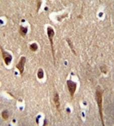 - Immunohistochemistry analysis in formalin fixed and paraffin embedded human brain tissue reacted with FBXO39 Antibody (C-term) ??followed by peroxidase conjugation of the secondary antibody and DAB staining.