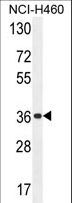 - OR4A47 Antibody western blot of NCI-H460 cell line lysates (35 ug/lane). The OR4A47 antibody detected the OR4A47 protein (arrow).