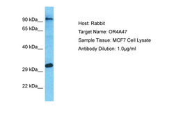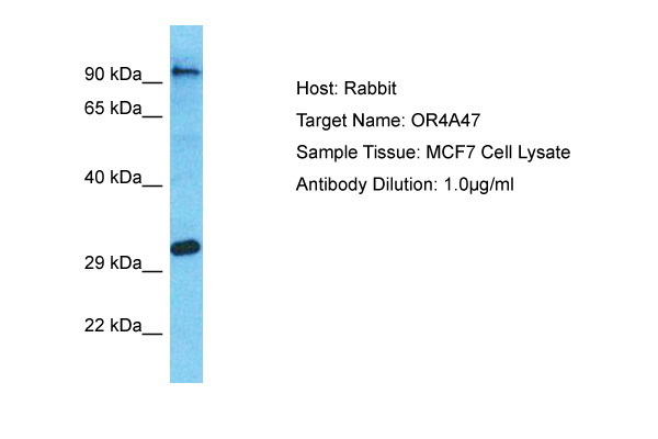- Host: Rabbit Target Name: OR4A47 Sample Tissue: MCF7 Whole Cell lysates Antibody Dilution: 1.0µg/ml