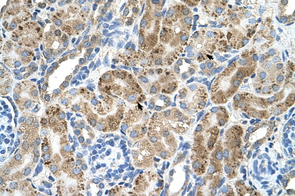 - VMA21 antibody ARP44721_T100-NP_001017980-LOC203547(hypothetical protein LOC203547) Antibody IHC of formalin-fixed, paraffin-embedded human Kidney. Positive label: Epithelial cells of renal tubule indicated with arrows. Antibody concentration 4-8 ug/ml. Magnification 400X. This image was taken for the unconjugated form of this product. Other forms have not been tested.