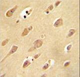 - OR5L2 antibody immunohistochemistry of formalin-fixed and paraffin-embedded human brain tissue followed by peroxidase-conjugated secondary antibody and DAB staining.
